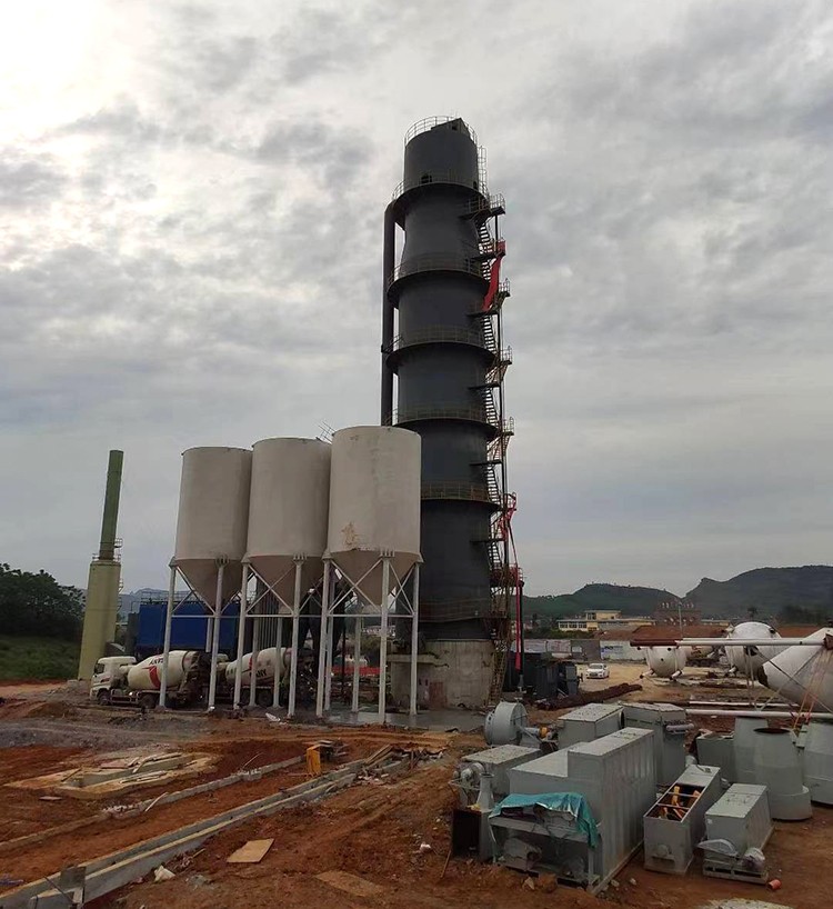 助燃空氣由羅茨風(fēng)機(jī)從爐體下部吹入爐內(nèi),克服料粒阻力從下部上升至爐頂,在除塵引風(fēng)機(jī)的吸引下,煙氣通過管道輸送到除塵器進(jìn)行除塵。由于引風(fēng)機(jī)的作用,使窯內(nèi)料面上方形成微負(fù)壓區(qū)(-10Pa左右)。這個(gè)微負(fù)壓保證了爐內(nèi)氣流順暢,非常有利于煅燒帶石灰石進(jìn)行分解,引風(fēng)機(jī)將全部煙氣引進(jìn)除塵器凈化,而后從煙囪達(dá)標(biāo)排放到大氣中。